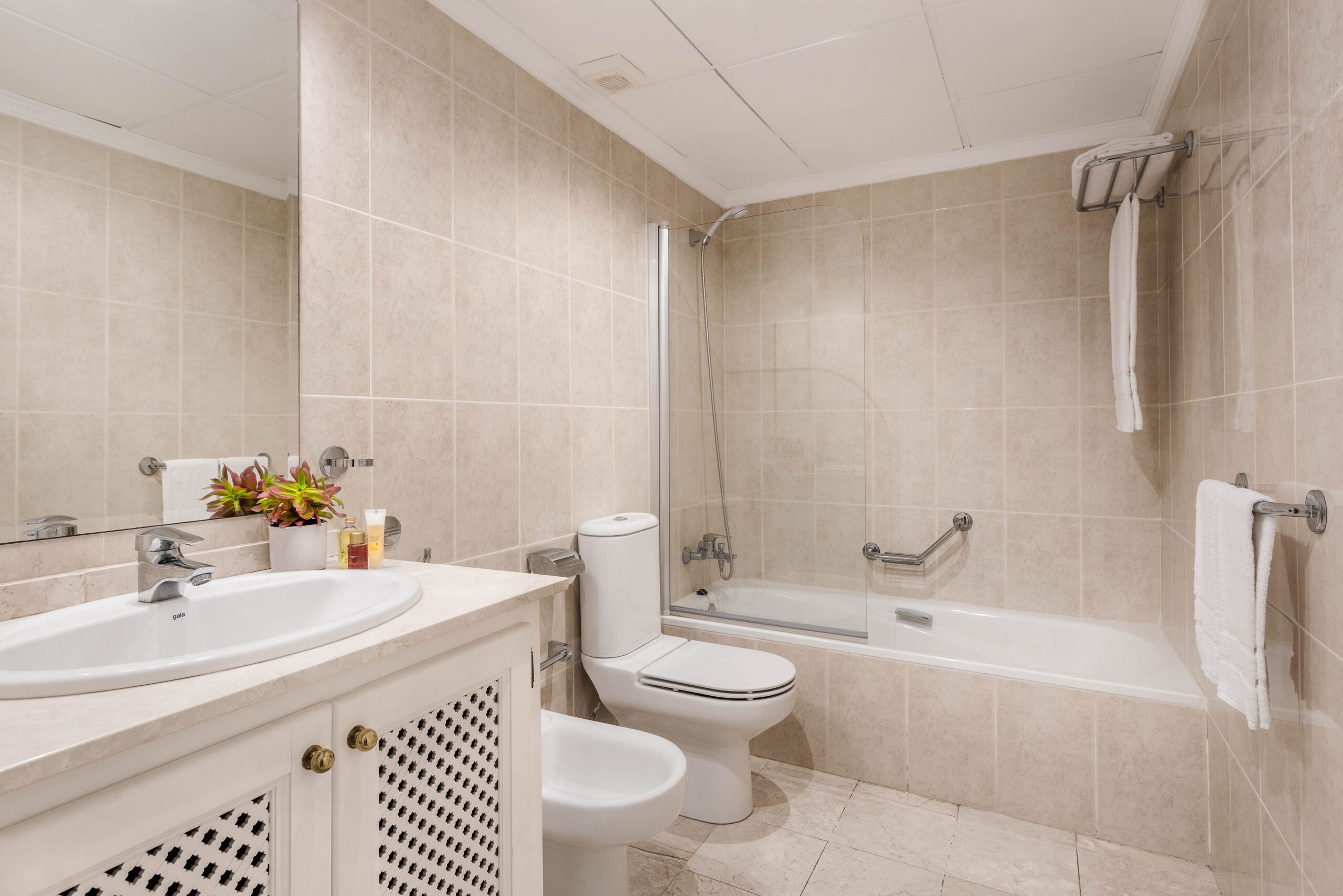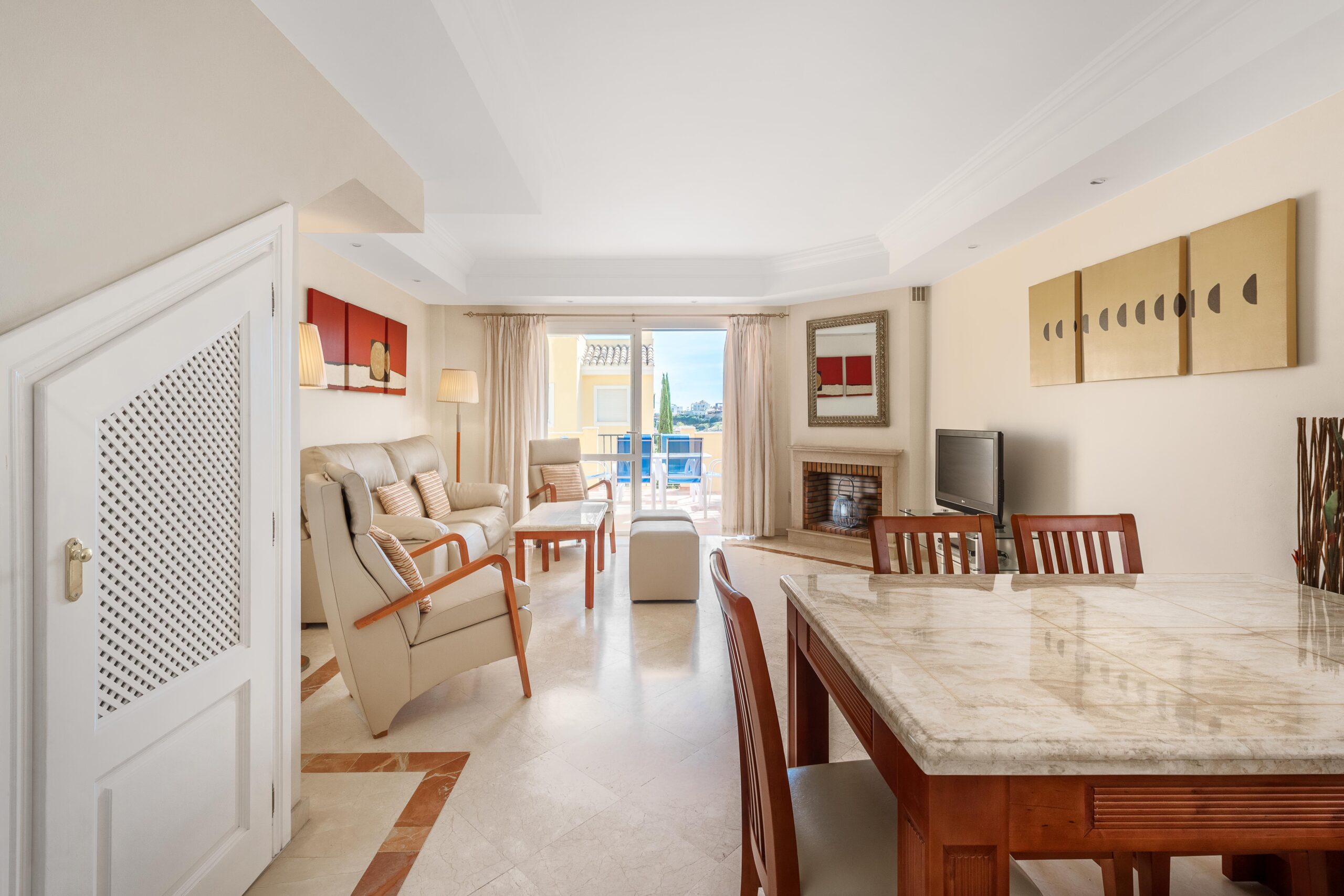 La casa adosada de 3 dormitorios se distribuye en 3 niveles, la planta baja tiene una sala de estar con acceso directo a una terraza, una cocina totalmente equipada y un aseo de invitados. Las habitaciones están ubicadas en el segundo piso, todas con baño en suite. El dormitorio principal también tiene vestidor y terraza con vistas al campo de golf y al mar. En la planta superior hay una terraza privada en la azotea, tumbonas, jacuzzi y vistas espectaculares de la costa.